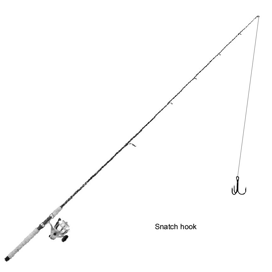 When snatch hooking for gators, you want a good stiff pole.I woulnt recommend anything over 7ft. For the line, I use 40lb power pro braided. It has held together for every gator but one and I can only imagine how big that one was to break it. I don't know what happened. We had two hooks on him, one snapped and then the other.